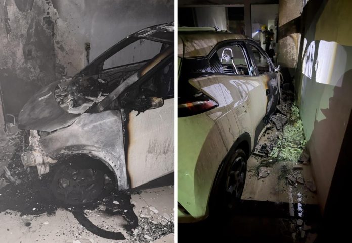 Imagens mostram carro elétrico destruído após incêndio