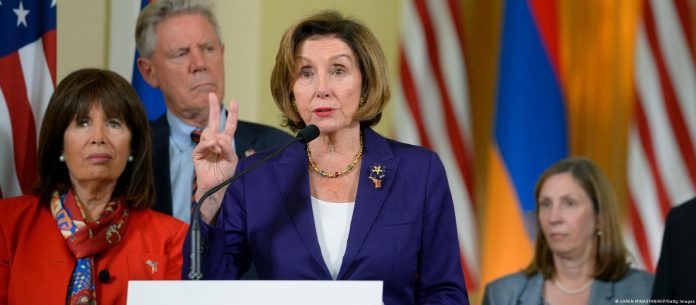 A presidente da Câmara dos Representantes dos Estados Unidos, Nancy Pelosi, condenou neste domingo (18/09) na capital da Armênia, Erevan, os ataques “ilegais” das tropas azerbaijanas às fronteiras do país: “Em nome do Congresso, condenamos veementemente os ataques mortais do Azerbaijão contra o território da Armênia”, disse em coletiva imprensa, ao lado do presidente do Parlamento armênio, Alen Simonyan.