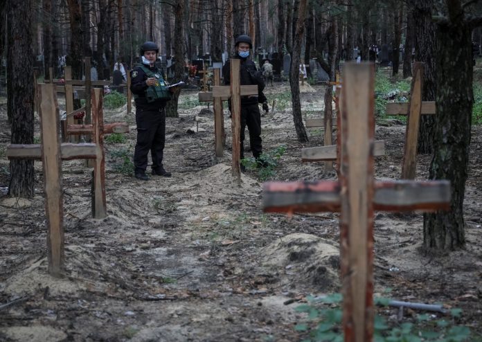 Mais de 440 sepulturas foram encontradas em uma floresta perto de Izium, no leste da Ucrânia. Alguns dos corpos estavam com as mãos amarradas. Outros mostravam sinais de terem sofrido violência.