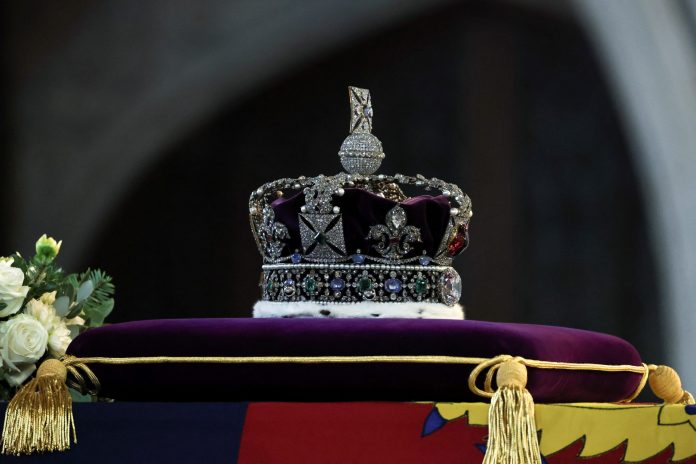 Coroa é colocada sobre o caixão da rainha Elizabeth II